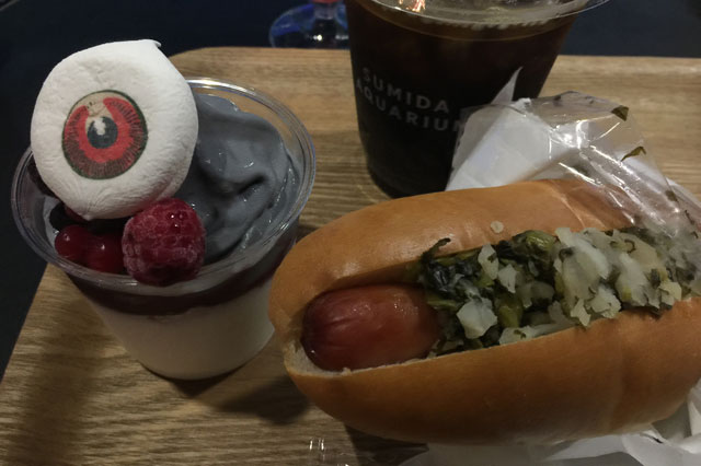 なかで限定メニューの目玉おやじパフェだかも。ついでに漬物ドッグなども。なかなか美味しい漬物を使っておりました。ちょっと珈琲にもコーラにも合わないけど。