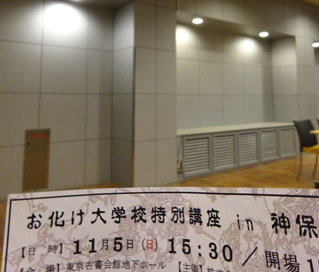 おなじみの妖怪推進委員会のワゴンは昼までで撤収してしまって売り子やってた京極夏彦さんもこちらへ登壇。いつもの多田克己、村上健司 に加えスペシャルゲストは水木プロダクションで40年アシスタントをやってた村澤昌夫さん。水木さんと神保町に来た時の話やらアシスタントやめたあともときどき遊びに来ていたつげ嘉春さんの話やら。月末の調布での水木さんの三回忌のイベントにも行かなくちゃです。