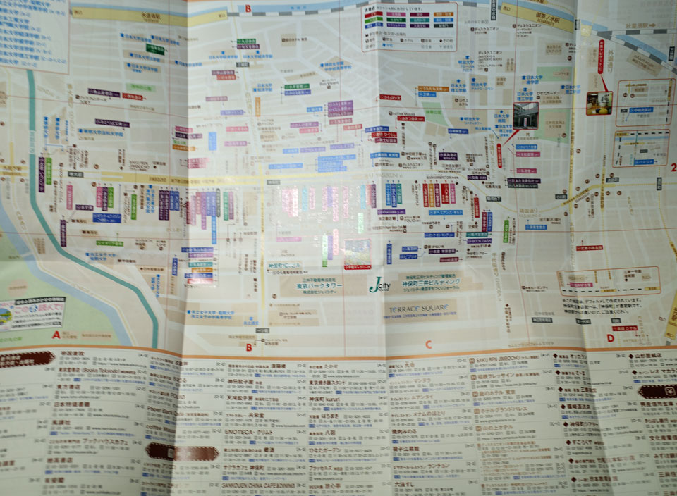 広げると見やすい神保町全体のマップ。