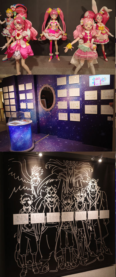 展示は夜九時までなので仕事帰りの人でも見に来やすいようで、親子連れもいれば子供の頃に見てたという女性たちや二人組でガチガチのコスチュームで来てる人たちも。もう少年でもなさそうな男性客も多く、この幅の広さが人気が長続きする理由だなあと思いました。