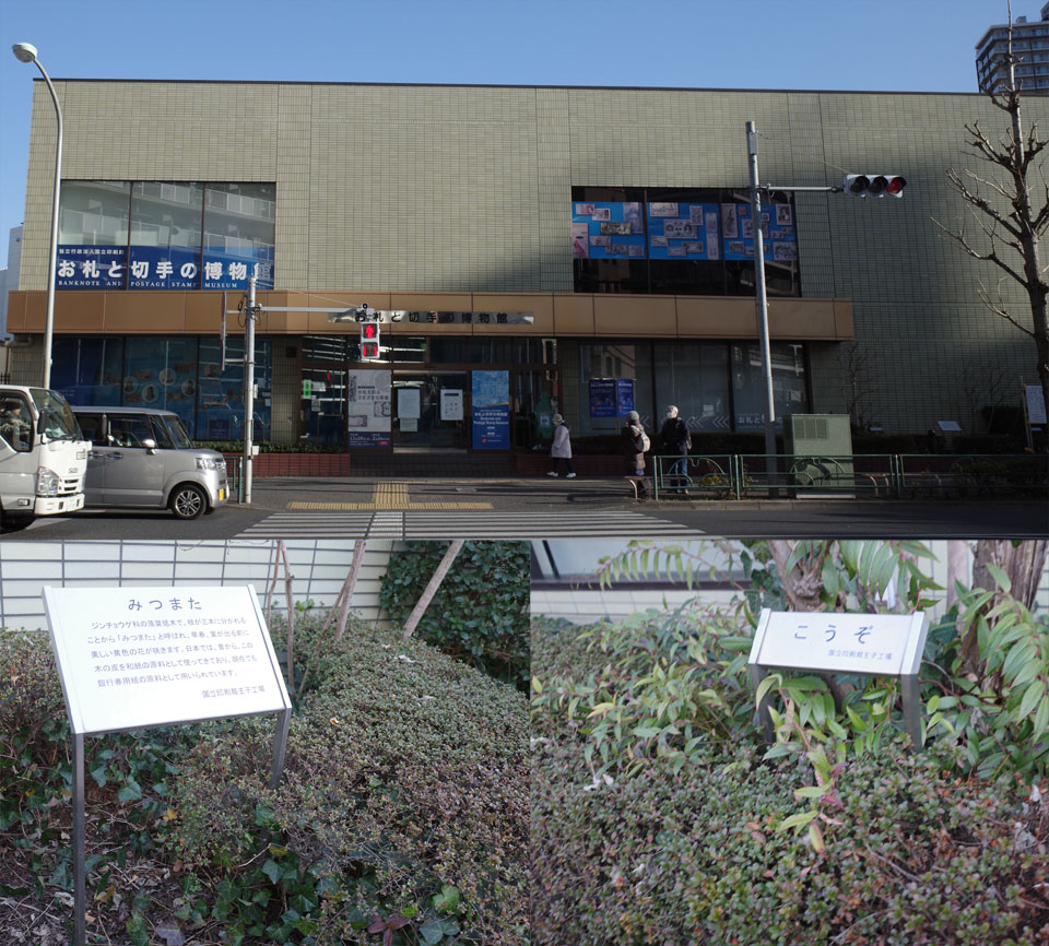 手前に植えられてるのはコウゾ、ミツマタ。和紙やお札の原料ですね、小学校で習いました。初めてみたかも。