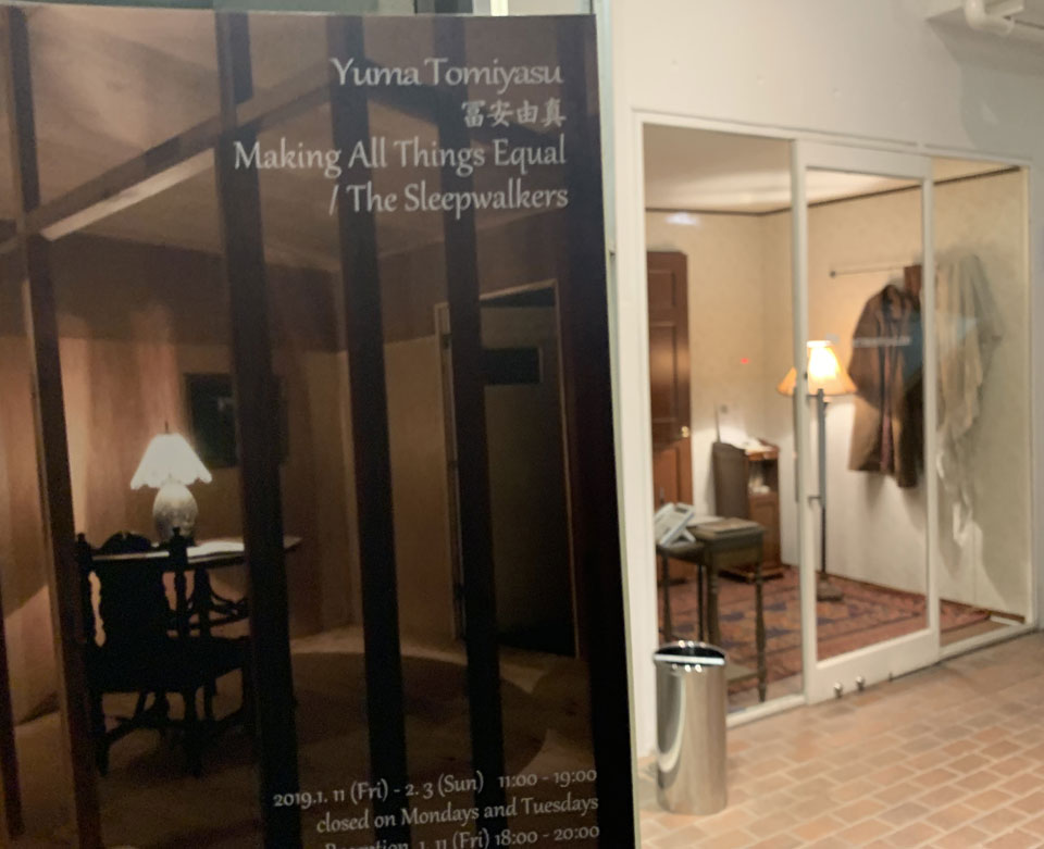 床面積自体は前回いくつもの部屋に別れてたぶんの一部屋分くらいしかないのですが、まるで普通に床にあるように壁に配置されたちゃぶ台とか足元の方にしか配置されてない鏡とか、さっきまで誰来たはずの食卓とかが壁があるはずの仕切りの柱越しに混在して見え、軽く意識のめまいを起こそてる間にまたしても壁の外から不定期に誰かが窓をたたくという。いくつかある室内の照明もバラバラのタイミングで明滅し、ときには部屋全部が暗くなって。そうしたときに銀座よりも狭い密室感が増して、かなり怖い体験となりました。2月3日まで。