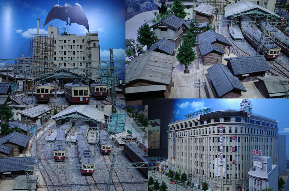 展示のメインが特撮セットの設計図というあまり派手さはないものですが、あれはこう作られてたのかという点からするとこれ以上はない満足度。まあほとんどが撮影不可なのですが例外は入り口のロゴと、展示ラストに大きくスペースとった『ラドン』の博多岩田屋デパート近辺のセット復元。