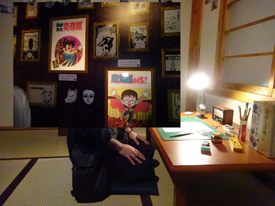 といって、見どころの黒いセールスマンのいるバーのセットなどは写真にとってなく。なかなか自分が中にいる写真は撮りづらいのですよ。かろうじてトキワ荘の再現場所だけ撮ってもらいました。