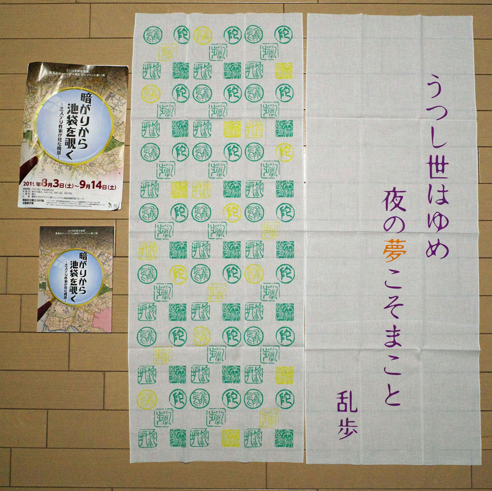 多分展示終了後も売ってるんじゃないかなあという図録は豪華なものではないとはいえたった300円。各作家の落款と、乱歩のお言葉の手ぬぐいは500円でした。缶バッジとかもありましたよ。