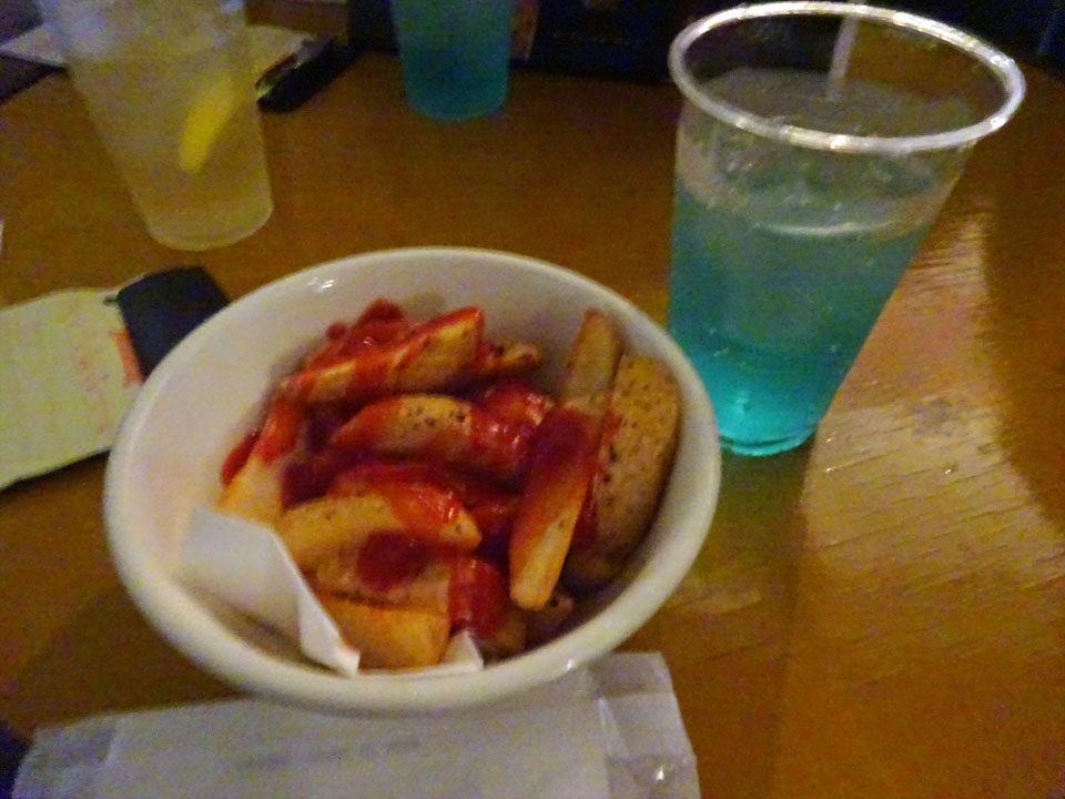 場内満席にもかかわらずよく冷房がきいてて、特別メニューの青ざめソーダと血まみれポテトをいただきました。