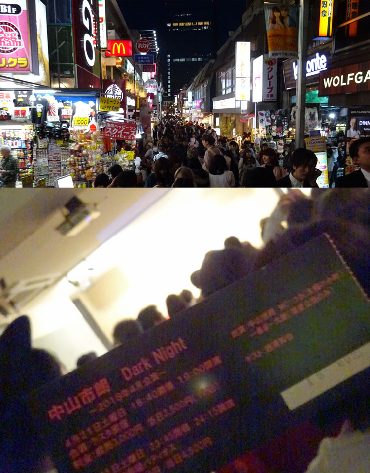 土曜夜の原宿竹下通りはそりゃあもうすごい人波で、会場も満席。