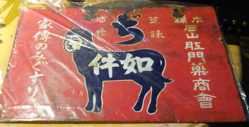 件のホーロー看板。妖怪好きでない人にはなんだコレでしょうが、現物が見られるとは。へええ。