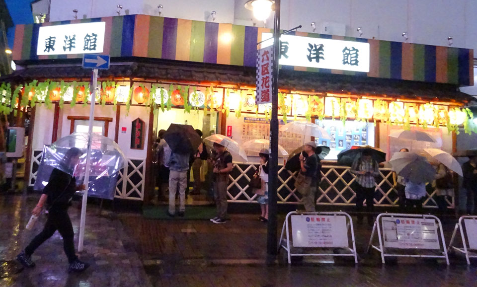 小雨の中、二回目となる浅草での公演はいかがなものかと思えば、やはり入場待ちの列。