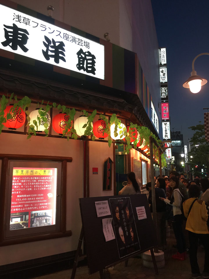 浅草に着いてみると東洋館の脇にすごい列が。ええまさかこれが怪談会の列とは。