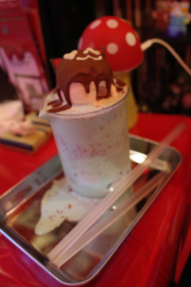 チョコミントシェイクいただきました。ちゃんと可愛い猫のチョコだったのでもうちょっと上から撮ればよかったな。牛皮を載せたおばけちゃんシフォンケーキも美味しそうでしたよ。