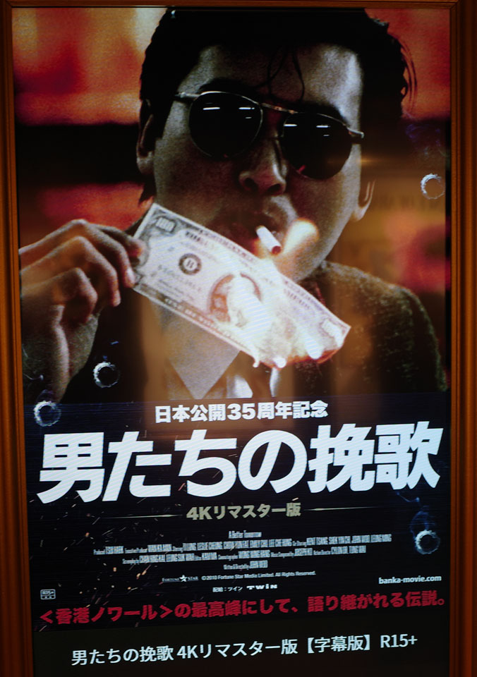 先日カラオケに行って、おや中華ソングあるなあ『無間道』とかあるのかしらん、あるわ。じゃあ『當年情』は『奔向未來的日子』は、と見たらあるし歌ってみたらそれなりに歌えるし。そういえばこないだ映画館で『男たちの挽歌』4Kリマスターの予告見たなあ、てもう公開か!さっそく初日に行ってみました。東京では新宿と池袋でやってるようだけど、初公開見たのが池袋だったのでそっちで。もう35年かあ。その後テレビ放映のたびに見てるはずなんだけど、ホー狄龍ティ・ロンが務所に入る前までのところがまあちゃんと覚えてないこと。何見てたんだ俺。今ならわかる徐克ツイ・ハークや呉宇森の出演場面、ていうか徐克コメディ演技上手いよね。そんなコミカル場面があることも今見ると新鮮。これと続編『男たちの挽歌Ⅱ』からどれほどの映画が生まれたことか。