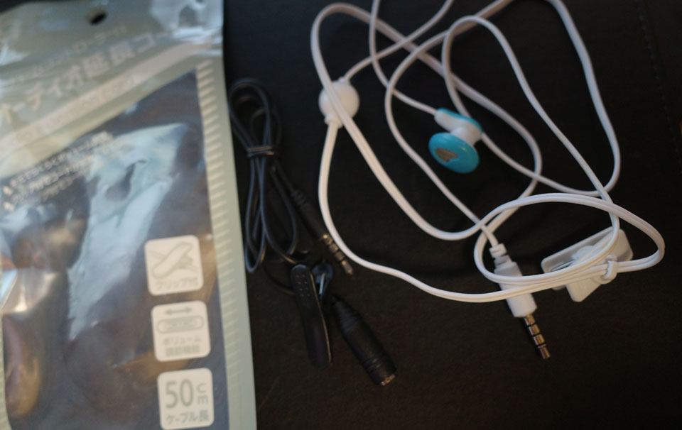 先日買ったマイク付きイヤフォンで試してみました。やはり、ちゃんと使えそう。ただ50cmでは短い。買い足して繋いでも使えるかな?