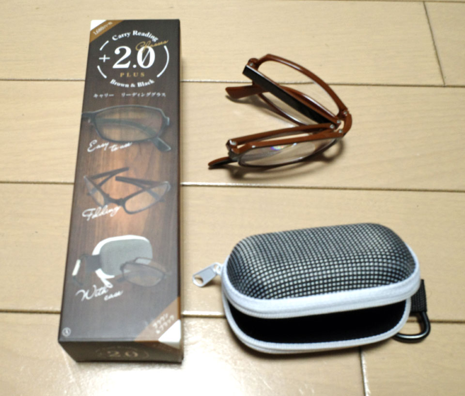 休みの日に折りたたみ老眼鏡をいつもの小ショルダーから和式鞄に入れ替えて翌日仕事行く日にそのまま忘れてったわけですよ。そのまま仕事できなくはないけど不便。最近は百均でも売ってるとはいえ近くにない。会社隣の西友に行ってみたら、本屋さんでこれ見つけて即購入。1680えんだったかな。折りたたみ方式はほぼ同じのプラスチックな廉価版だけど、便利なんで、こっちを和式鞄に入れておくことにしました。