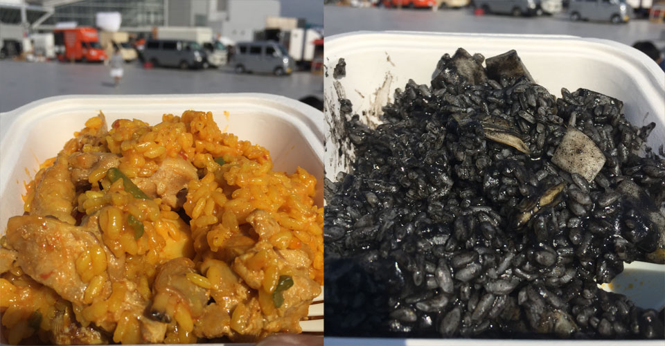 パエリアを普通タイプのと、イカ墨の二種類いただきました。