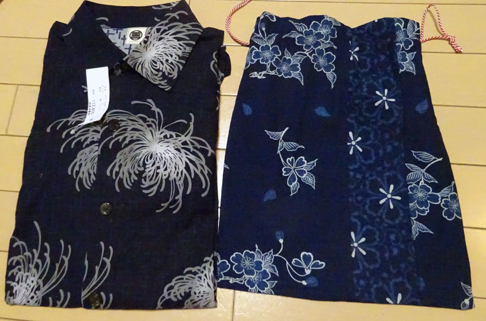 いつものようにコウモリグッズだけ探してたのですが、これはつい買ってしまった和柄シャツ。
