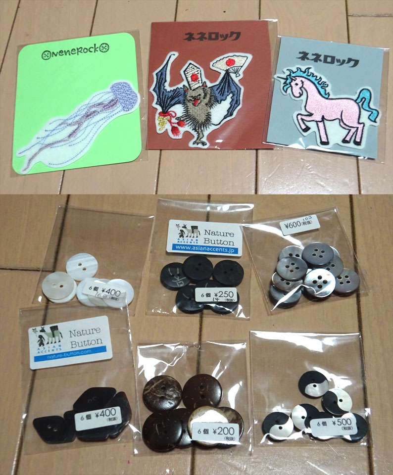 ボタンもいろいろ。陰陽とかどんな服につけようか、とか。