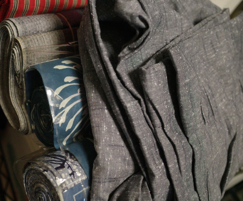 グレーの作務衣と、浴衣地をいくつか買ってきました。