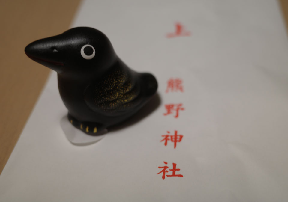 八咫烏の置物。中におみくじ付き。たしかムーのTwitterでとりあげられてちょっと話題になってたのでした。なかなかいい表情。