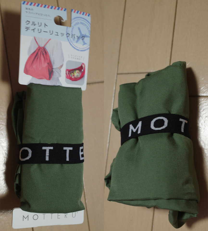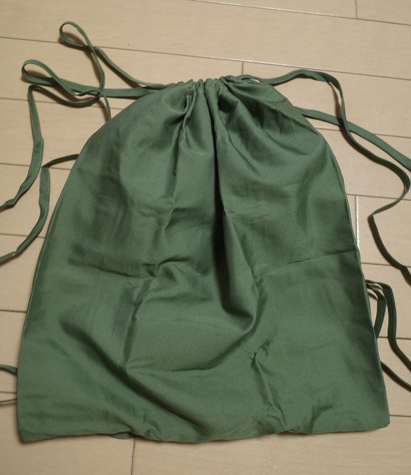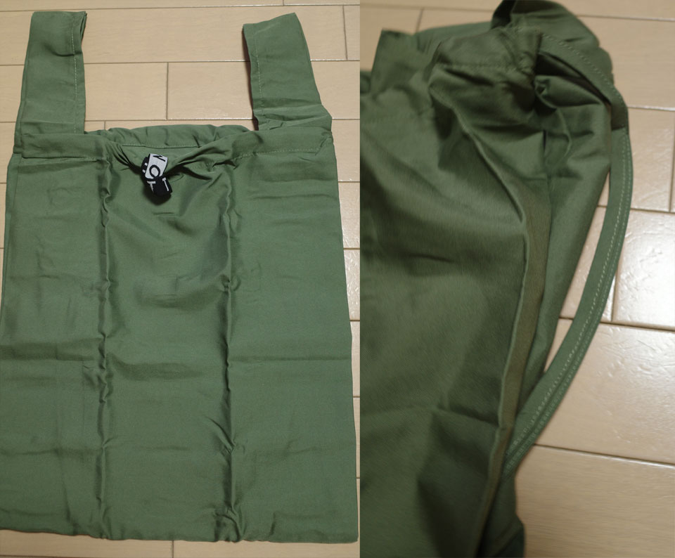 手触り柔らかいけどしっかりしてそうな布製。クシャッと丸めたときにまとめるゴムが付いてるのはいいですね。