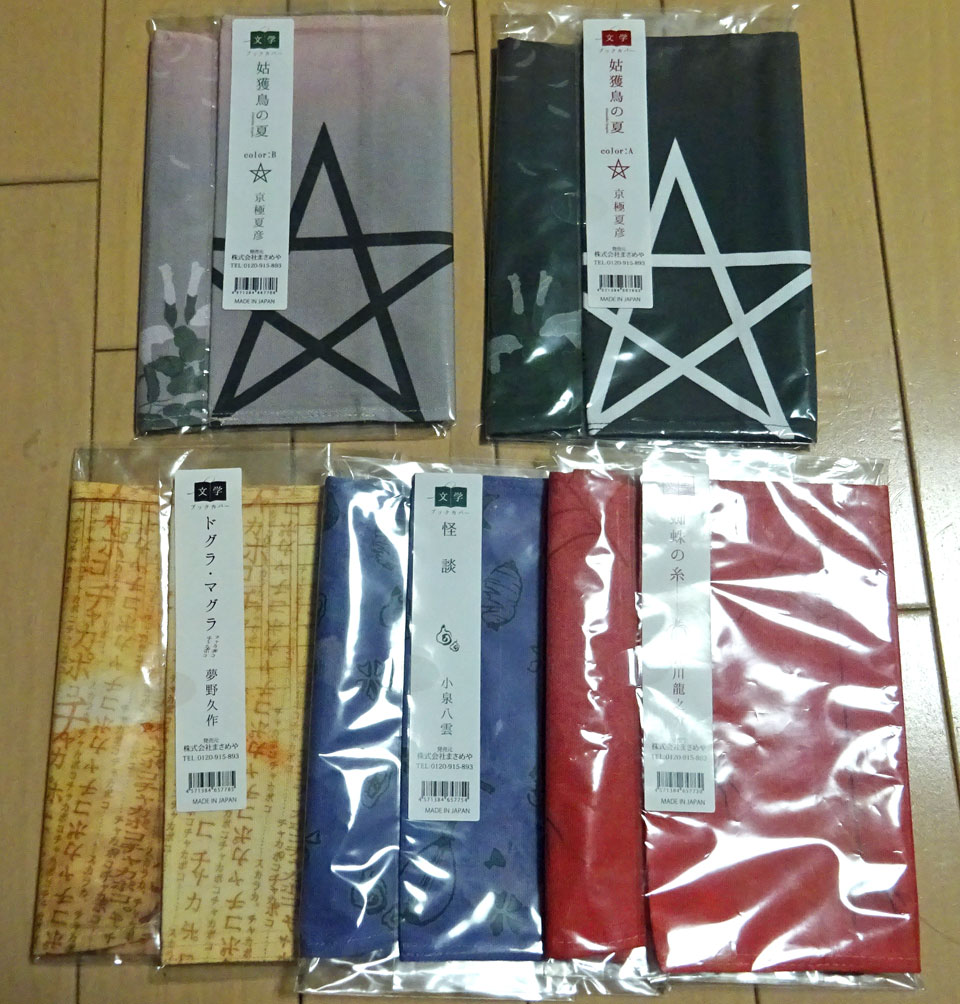 東京創元社初夏のホン祭りでくらりのブックカバー買いましたが、ブックカバーといえば先日さいたま新都心駅近くの紀伊国屋でこんなものを見つけて一挙に五種類買ってしまいました。