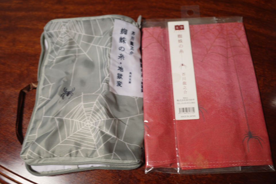 前に書店で買った『蜘蛛の糸』ブックカバー。これもいいですね。