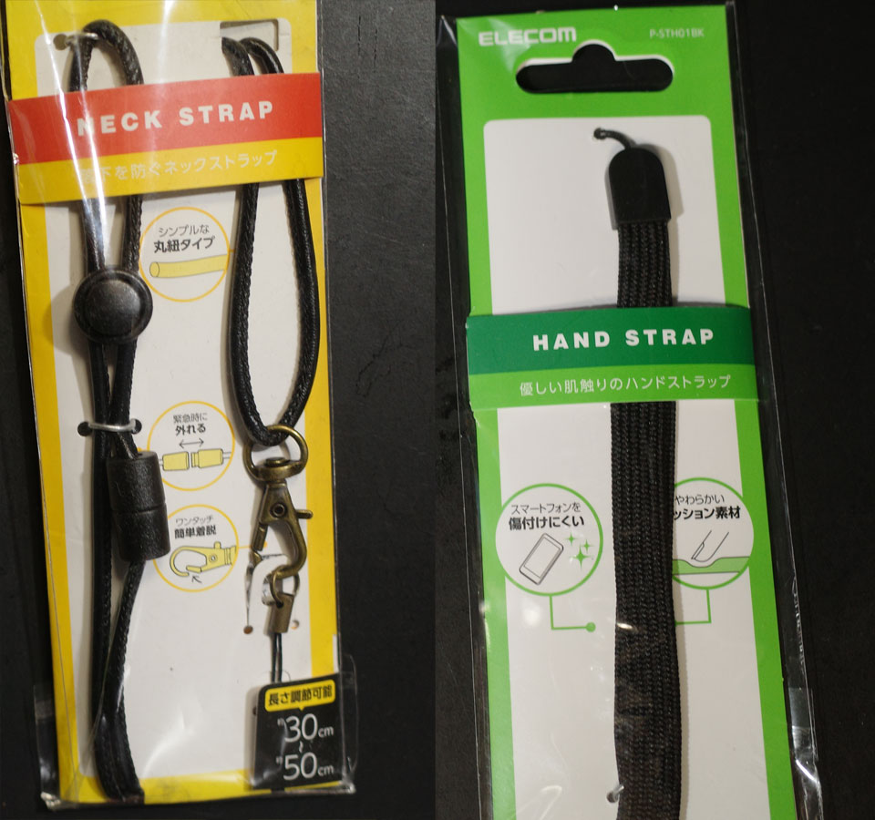 iPhone機種変でごついカバーにし、モニタと反対側に最近流行りっぽいリングが付いてるもののどうも自分の使い方ではしっくりこないのでやはりストラップを購入することに。