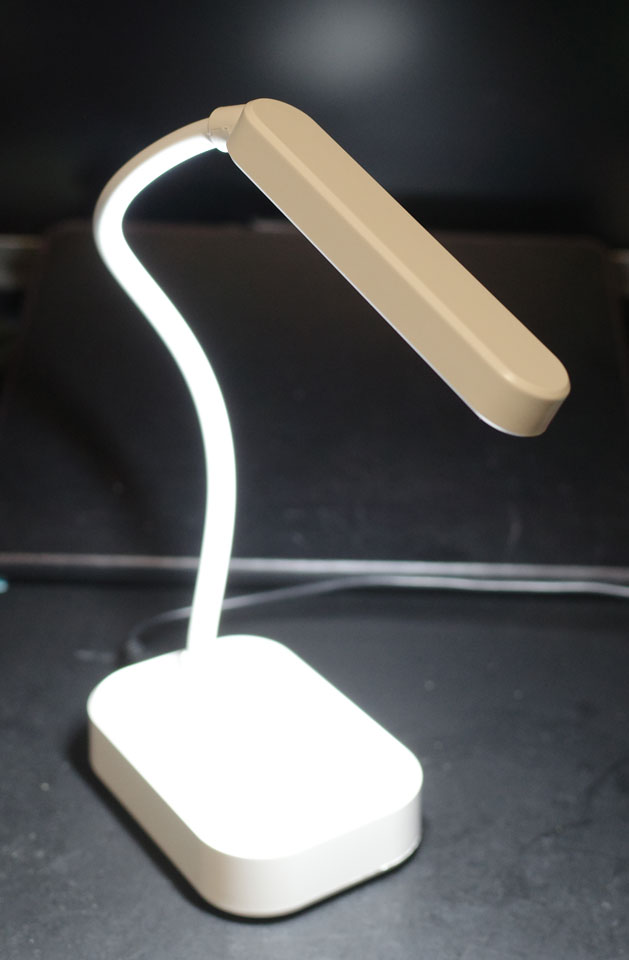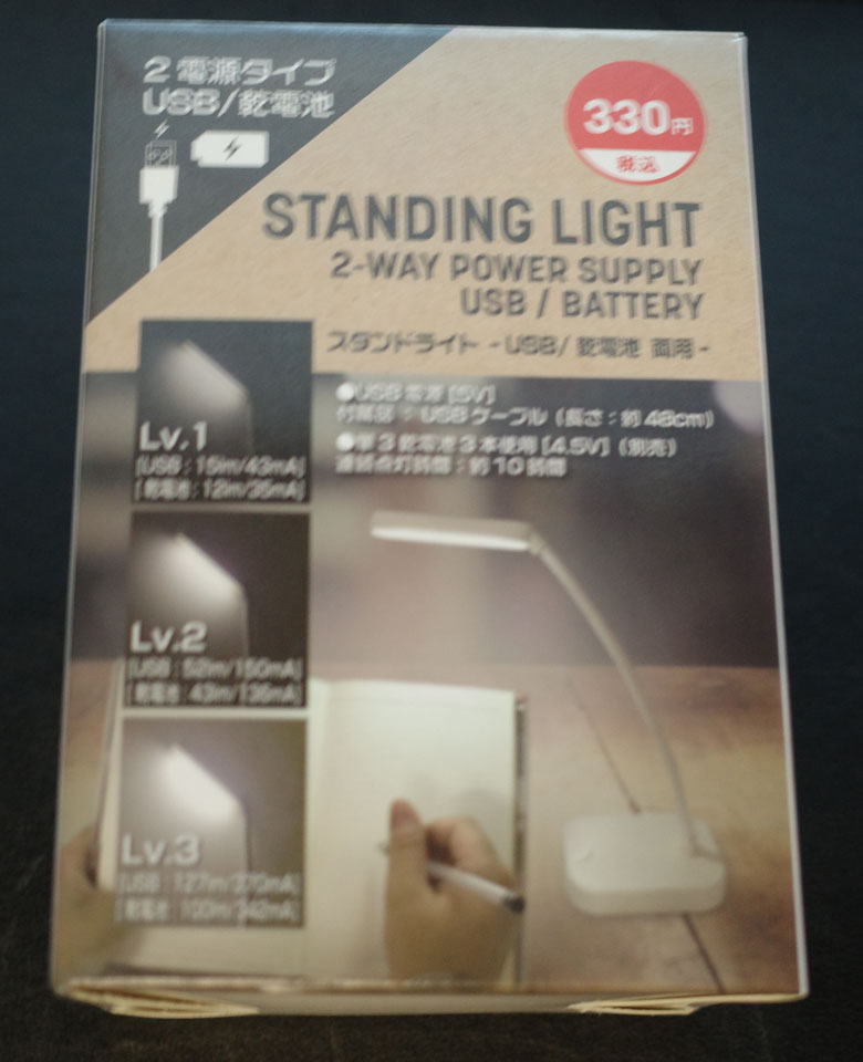 箱から出して首を伸ばすと別に短くはなく前のと同じ感じ。ただ、たしかに少し明るくなってる気はします。使用目的には十分すぎ。これが300円台で買えるのだから便利は便利ですよねえ。でもなんで明るくなってるのかな。箱が小さいのは輸送費の節約としても。まあありがたいからいいか。