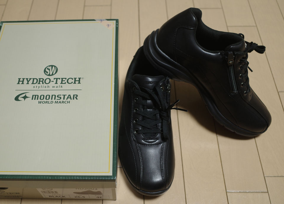 梅雨前くらいに耐水性の靴買ったものの、どうも蒸れるようなので新調することに。この際一度買ってみようと思ってたゴアテックスにするかあ、とお店見て回ったんですが、これというデザインがなく、また幅広のものも少ないようなので前にも履いてた記憶がある月星の靴にしました。