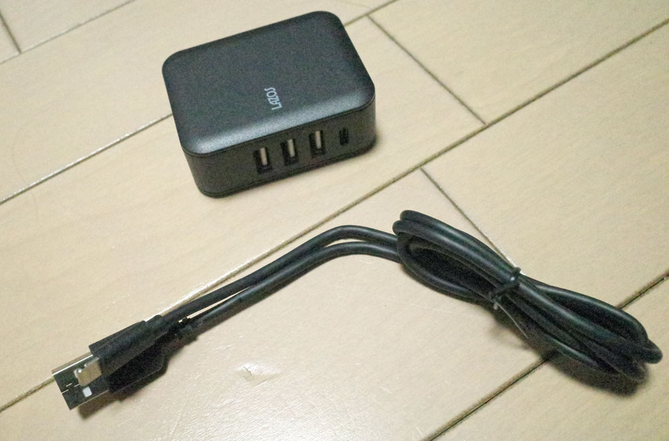 iPhoneやiPad充電用のUSB電源アダプタ、各ケーブルに一つずつだとコンセントが一杯になっちゃうんですよ。いつも二口のものをカバンに入れてるけど旅行時にモバイルバッテリーの充電もあるととても足りない。前に5つ口のを買いましたが流石に携帯できるサイズではないし。と探し始めるとすぐ見つかるのがさすが秋葉原。