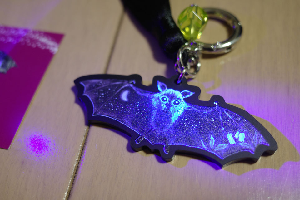 随分可愛いもので、コウモリでこういう色彩はめずらしいです。さすがデザフェス。