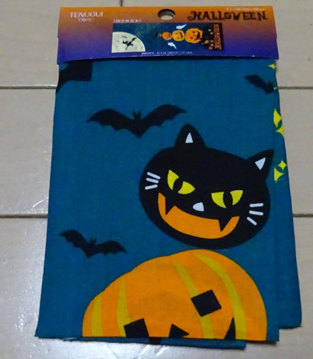 蝙蝠具その439 手ぬぐい 其の百弐ハロウィン用品で手ぬぐい。ま、蝙蝠自体は小さいですが。勝手に手ぬぐい呼ばわりしてるわけじゃあなくて、画像では小さいけど上部紙部分の左端にちゃんと手ぬぐいって書いてあるんですよ。