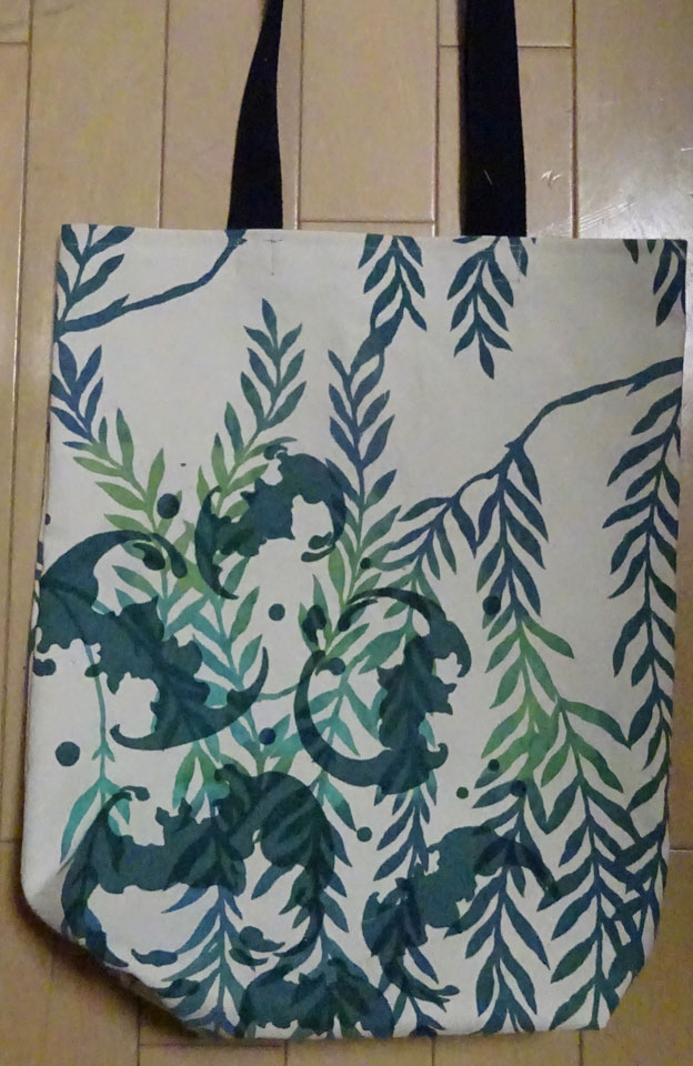 蝙蝠具 その485 トートバッグ これも家人が買ってきたもの。深川おばけ縁日でだったかな。今年は広島国際アニメーションフェスティバルと重なっていけなかったのですが、これ買ってきてもらえて満足。単体だと使いどころわかんなかったのに、昨日の肩掛け鞄とセットで和服のしかも何か買い物するときとかに使えばいいのではとわかったので、どこかにそれで行きます。