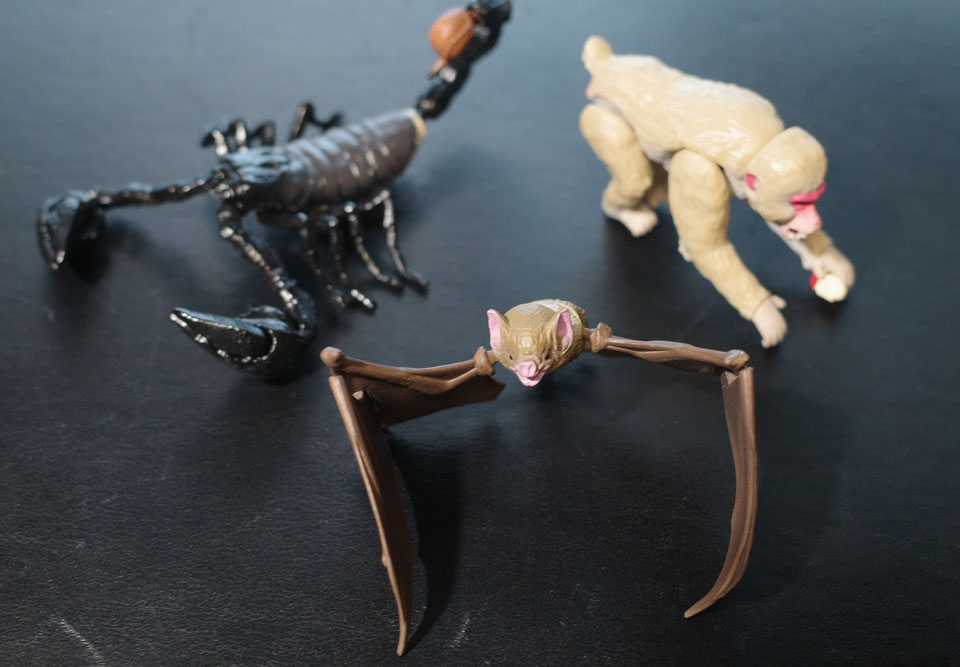 うち二種が猿というのがよくわかんないですがサソリも良く出来てるし、何よりこのコウモリ。