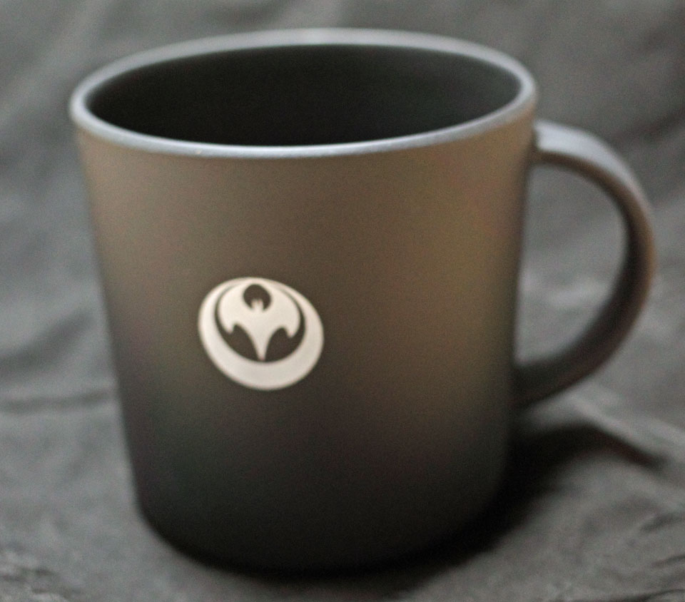 新作蝙蝠グッズ、ひとつはマグカップ。陶器でなく、樹脂製かなにか。軽いけど丈夫そう。
