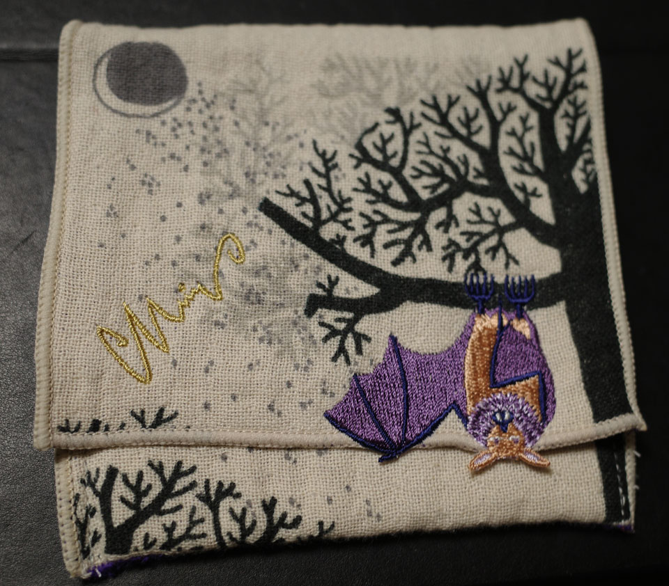 蝙蝠具其の541 布 ハンカチかと思ったら、裏は白い布。ハロウィン時期のテーブルクロスなどに、ですね。なかなか落ち着いた色調でいいかんじ。