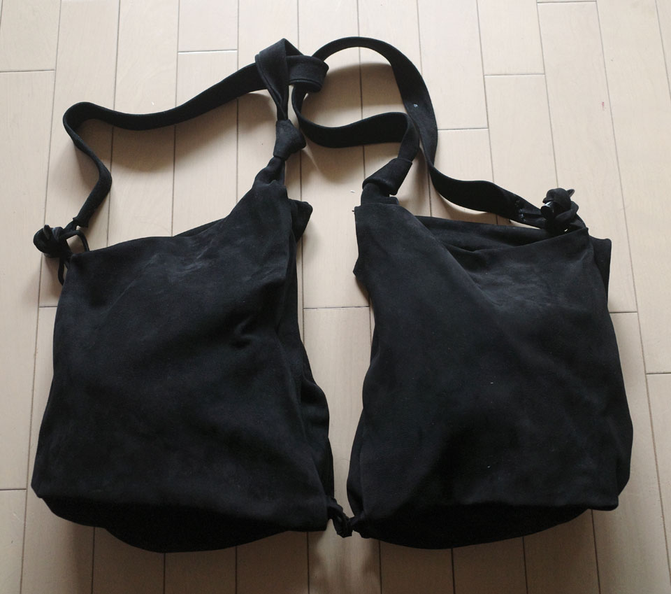 ショルダーバッグとして作りましたが、じつは左右二個で一組にして完成なのです。