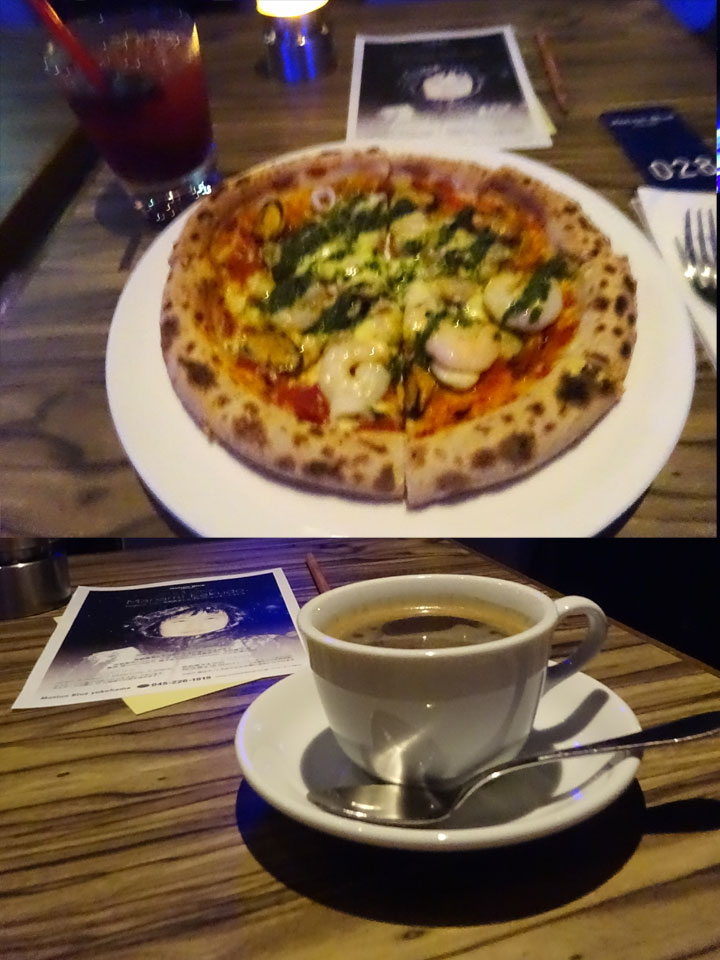 この店のオリジナルカクテルと新鮮シーフードのトマトピッツァを。どちらも美味しゅうございました。ディナーセットとかでも良かったかな。