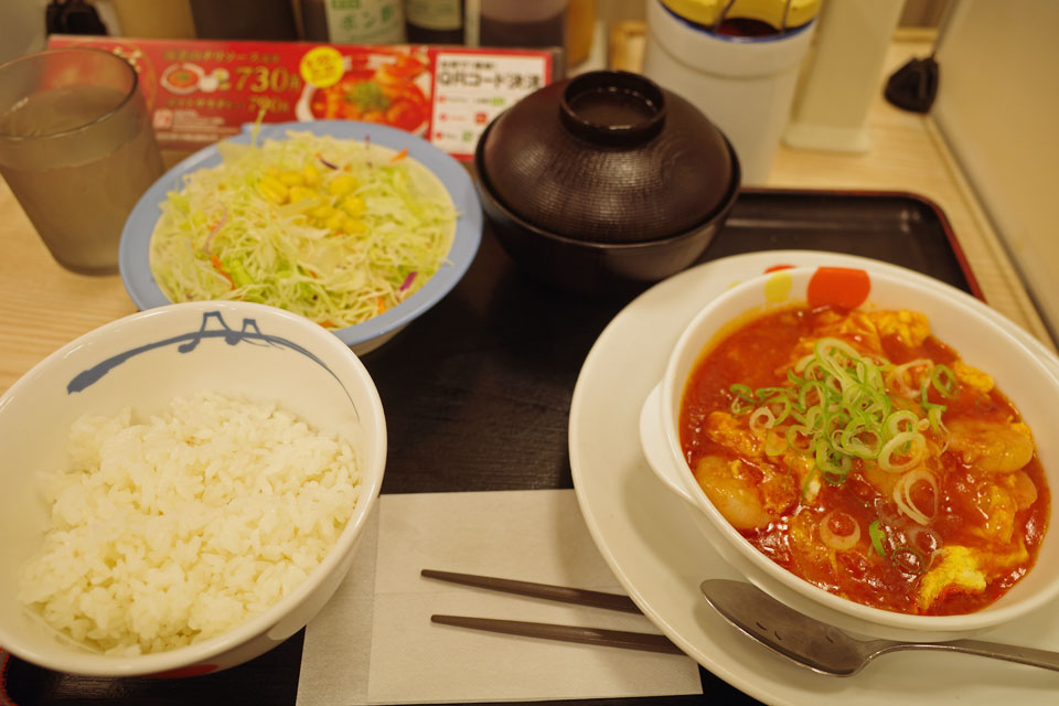 最近松屋が続けて新メニュー出してる感が。前はそんなに入らなかったから気が付かなかっただけなのかな。先日の味噌漬けトンテキに続いて出てたのがこのエビチリ。