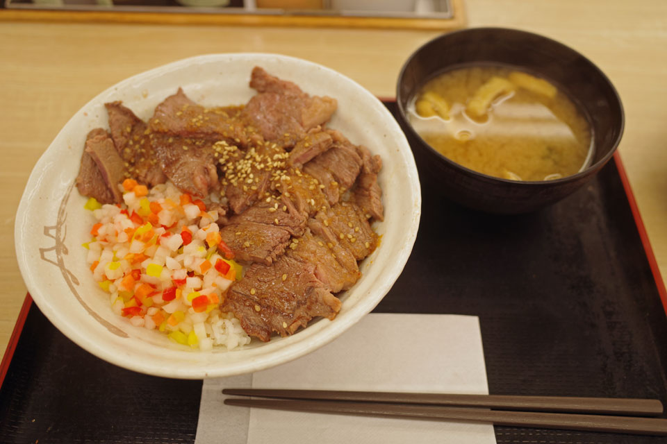 その後出たのがこの牛ステーキ丼。
