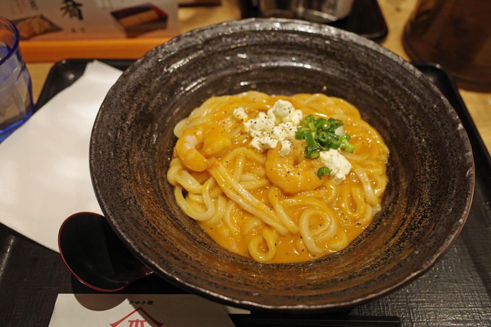 店の表に看板出てた「プリプリ海老の伊勢海老ソースうどん」なるものを。