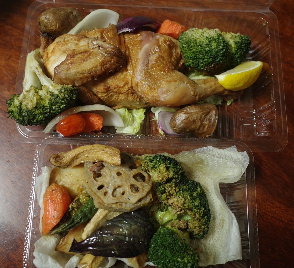 グリルチキン。それに付いてる温野菜が美味しそうだったので追加でアンチョビ味のものを。