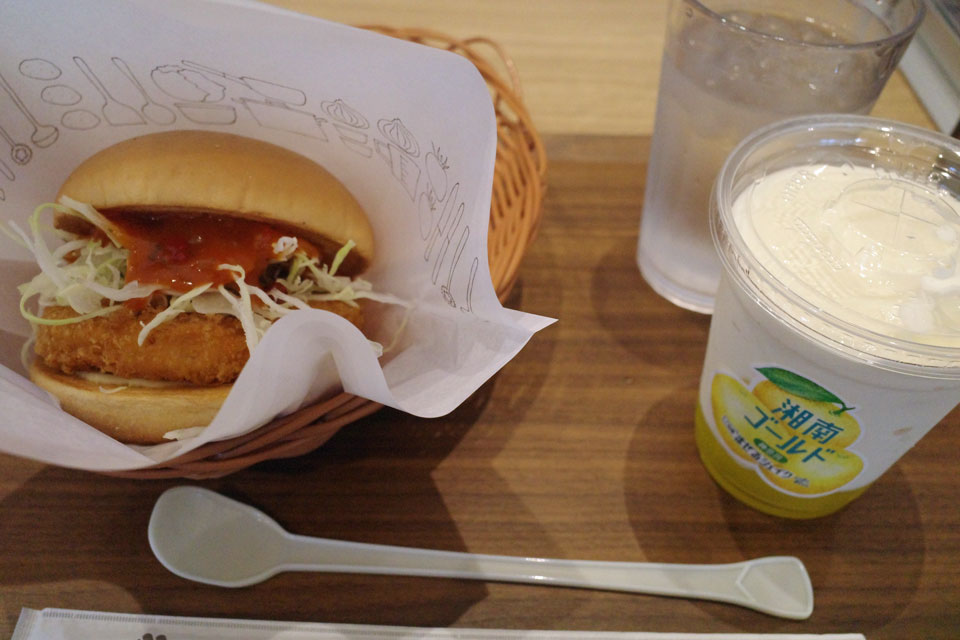 一昨年だったかな、愛媛県にいったとき真鯛のカツをバーガーにしてる店があっておいしかったんですよ。モスバーガーでそのメニューが出てるというのを思い出していってみたらもう終わってて。かわりにこちらを。