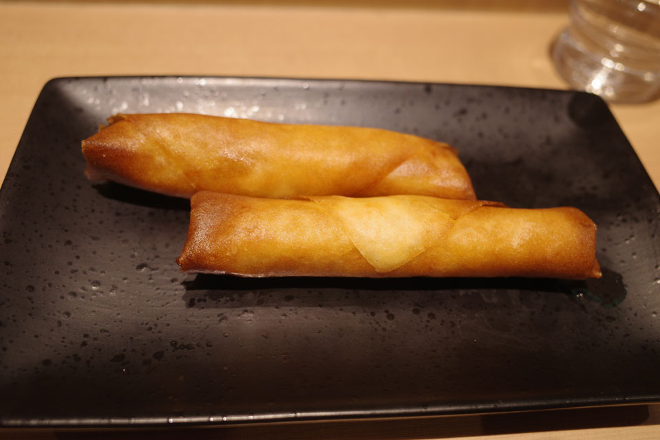 普通のとエビ春巻きの二種から。これはエビ春巻き。