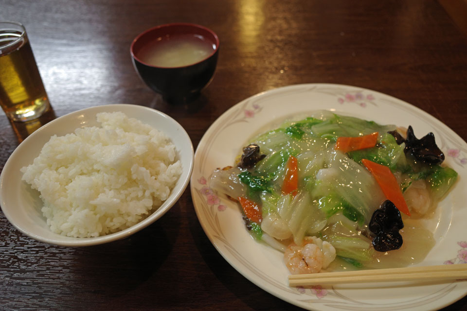 海鮮あんかけ焼きそばにご飯を。いい焼き具合の麺に乗った餡もついてくるスープも塩味。これはなかなか元のスープがしっかりしてる証拠。これはもっとお客さんは入ってていい店だなあ。他の料理も試してみたいですが。