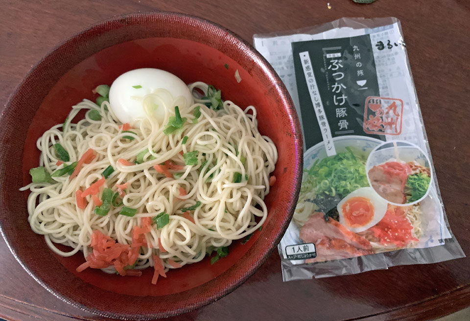 スープがないとはいえスープのもとをお湯に溶かさないでそのまま混ぜるというだけではあるのですがなかなかちゃんとした味。暑いときなんかにいいのかも。さっと食べられます。その分物足りない気もするかもだ。美味しいは美味しんですよ。