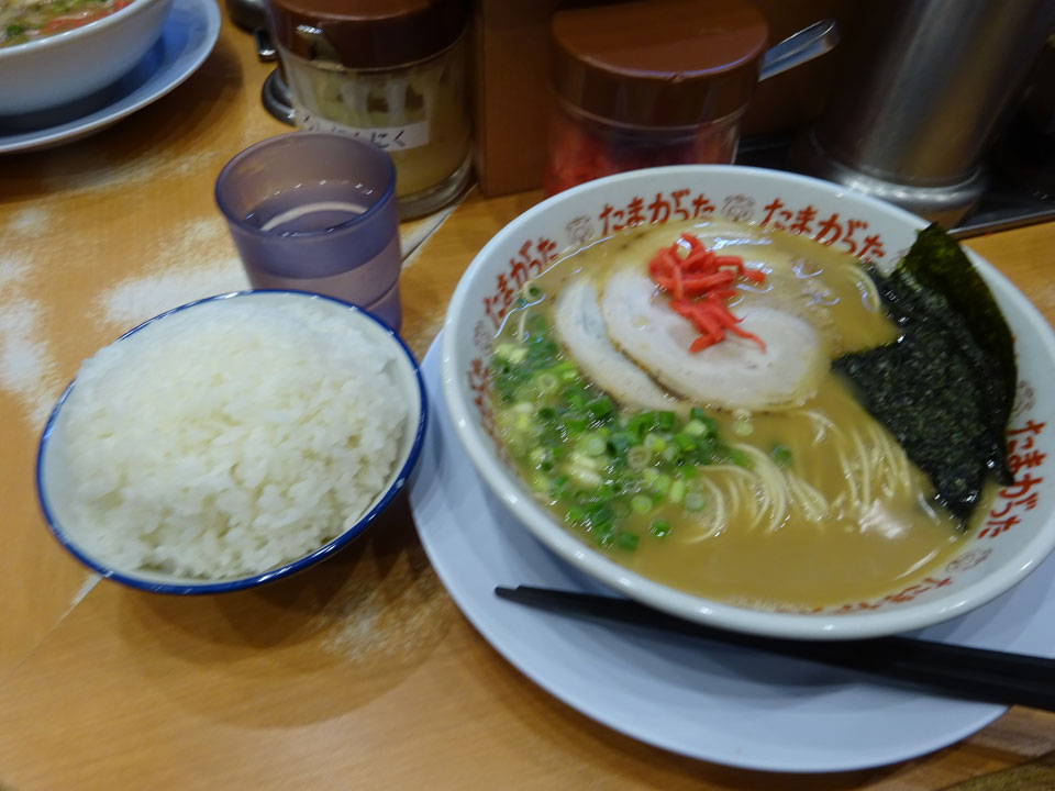麺は硬めで頼んだらかなりの細麺がちゃんと固くてグー。スープもかなーり美味しい。都内の大抵の九州風ラーメンのラーメンより好み。もともと北九州のラーメンは距離から言っても博多より大分に近い面もありますからね。が、表に『濃厚』と書いてあったとおりで、かなり濃く、美味しいのに完食に至らず。店内よく見ると麺の硬さだけでなく味の濃さもお好みに注文できるようで、薄めにすればよかった。関東に出店する以上こうしたほうが受けが良いのだろうし、地元でも新しい店はたいてい濃いめなのだけど、どこかであっさり目の九州ラーメンの店はないものかなあ。