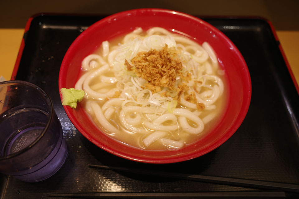 なるほどーこれが肉骨茶うどん。そばも選べます。肉骨茶はもともと肉を煮込んだスープみたいなもののはずで、十条に専門店もありなかなか滋養に良さそうな感じでした。富士そばのこれもスープそのものはあたりが柔らかく食べやすい感じ。それよりにんにくがかなり効いてます。上にふりかけたフライドガーリックが結構あるしね。それにまたわさびを添えるのが意外にあってる。