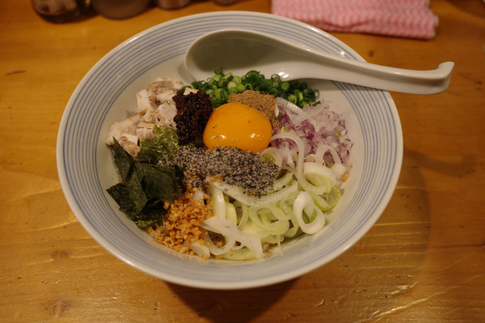 これはこれで大変美味しいですが、意外な難点がにんにく。このお店のラーメンにあまり使ってない感じだったので油断してましたが、このまぜそばには結構効いてるので後で人に会う場合はちょっと注意かも。と言っても昨今みんなマスクしてるから自分で感じるだけかもしれないですけどね。