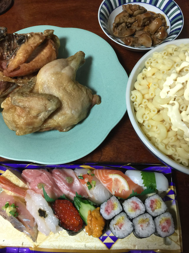 誕生日だったので、と言っても特に外食するわけでなく鳥しんの半身揚げとレバー煮、仕事帰りに成増で寿司と